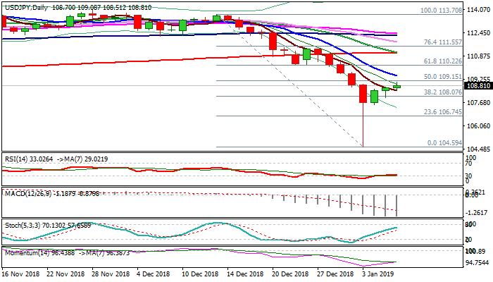 Bearish scenario requires confirmation on return and close below daily Tenkan-sen (108.00) that would signal lower top and open way for further weakness.