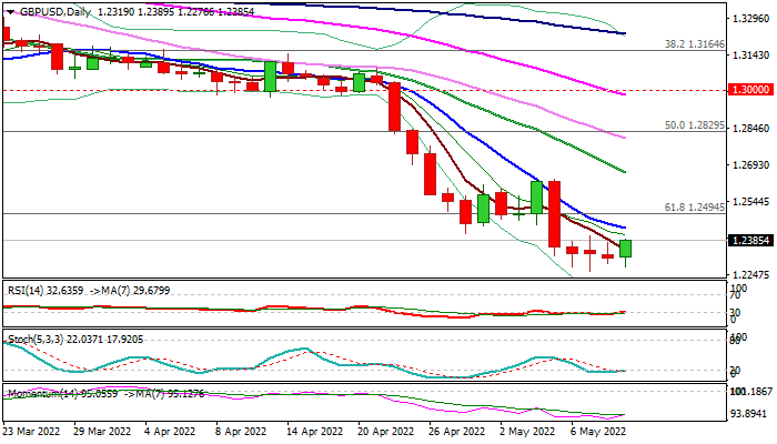 Cable fell below 1.23 handle after US CPI data came above expectations in April, but dip stayed above new 2022 low (1.2260) posted on Monday and subsequent bounce pushed the price to the mid-point of the near-term range which extends into fourth straight day.