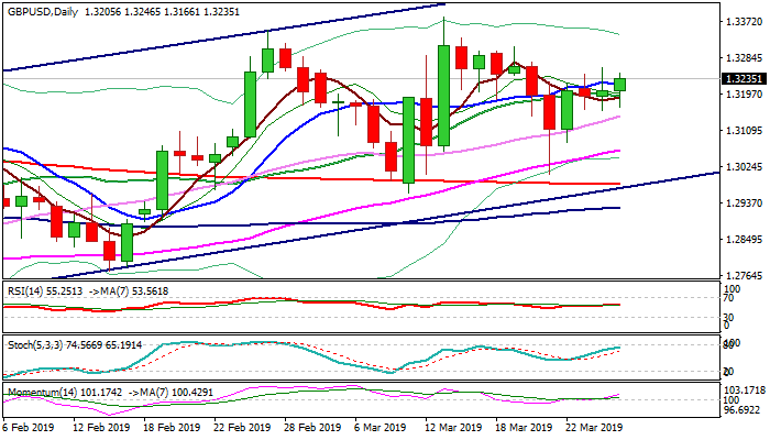 Cable stands at the front foot at the beginning of US session on Wednesday and rises above 10SMA (1.3220) in attempts to eventually register clear break, after upticks in past four days repeatedly failed to close above the moving average and generate positive signal.