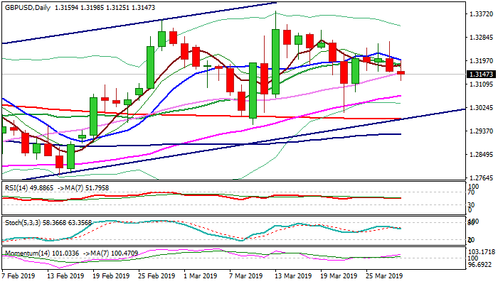 The upside was capped in past few sessions by 10SMA which turns south (currently at 1.3201) and only firm break higher would sideline downside risk.