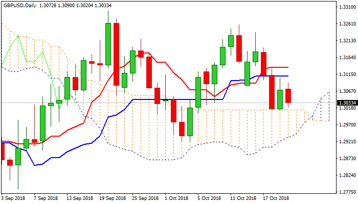 Cable almost fully reversed recovery from last Friday’s low at 1.3011, which stalled at 1.3090, as pound came under renewed pressure on concerns about Brexit.