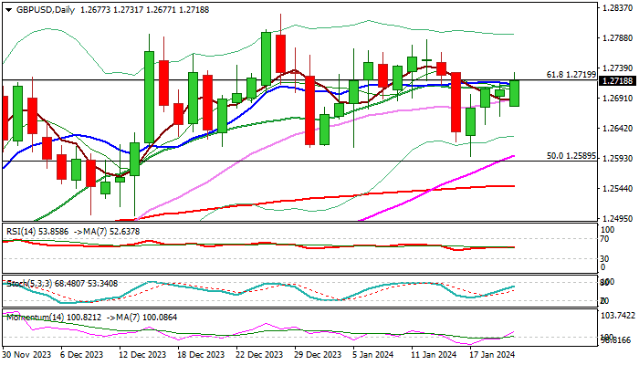 Bulls look for close above 1.2715/20 pivots (converged 10/20DMA’s / Fibo 61.8% of 1.3141/1.2037) to further firm near-term structure and expose next target at 1.2785 (Jan 12 lower top), guarding key barriers at 1.2827/44 (range top / 200WMA).