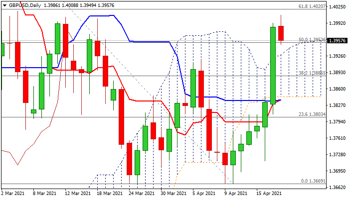 Current easing s far looks like positioning for final push through pivotal barriers at 1.4000/20 (psychological / Fibo 61.8% of 1.4238/1.3669), as bulls take a breather after six-day rally which strongly accelerated on Monday.