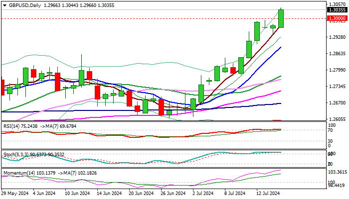 Fresh strength after a two-day pause for consolidation signals continuation of broader uptrend however, close above 1.30 level is required to confirm signal and focus targets at 1.3050 and 1.3100/20.