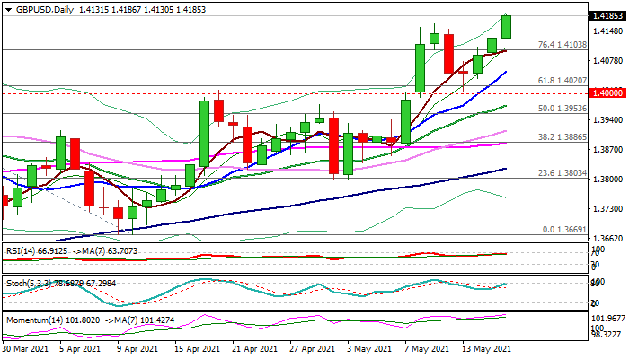 Fresh bullish acceleration in early Tuesday was boosted by weaker dollar and better than expected UK labor data, as easing lockdown boosts hopes for faster economic recovery and improves the sentiment.