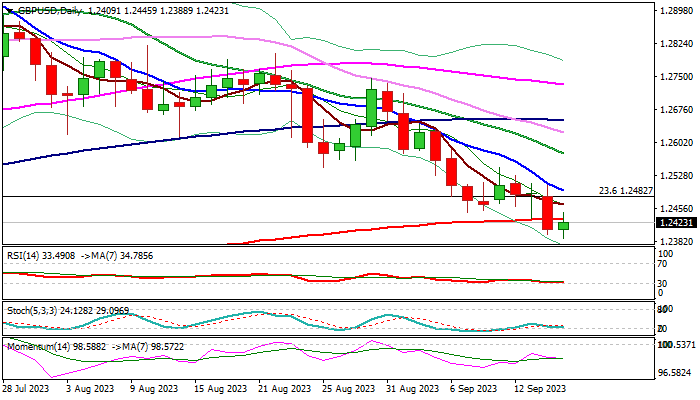 Fresh extension lower probed below 1.2400 handle after 3 ½ months, eyeing target at 1.2310/04 (May 26/25 higher base) test of which to mark full retracement of 1.2307/1.3141 rally.