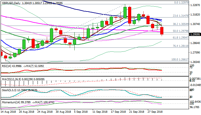 Fresh weakness dipped to the mid-point of thick daily cloud (1.3012/1.2874), with bears looking for bearish signal on close below broken Fibo 50% support at 1.2979, to open way towards key supports at 1.2904 (Fibo 61.8% of 1.2661/1.3297) and 1.2874 (daily cloud base).