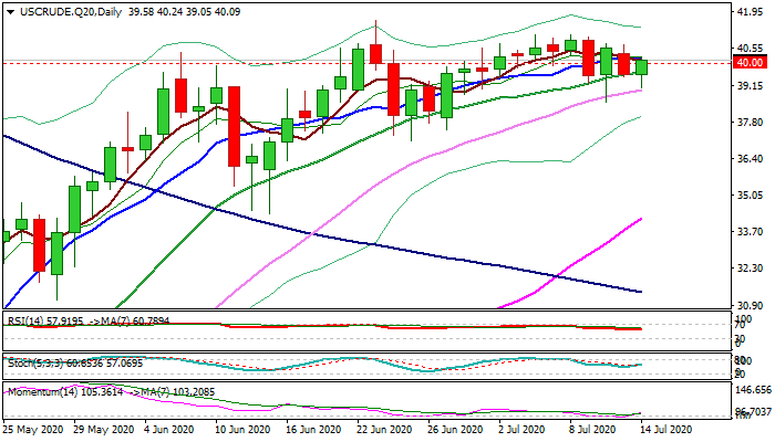 Today’s close above 20DMA will add to signals that the risk of deeper fall is limited for now and the near-term action, which holds in extended consolidation after failing to clearly break above $40 mark, biased higher.
