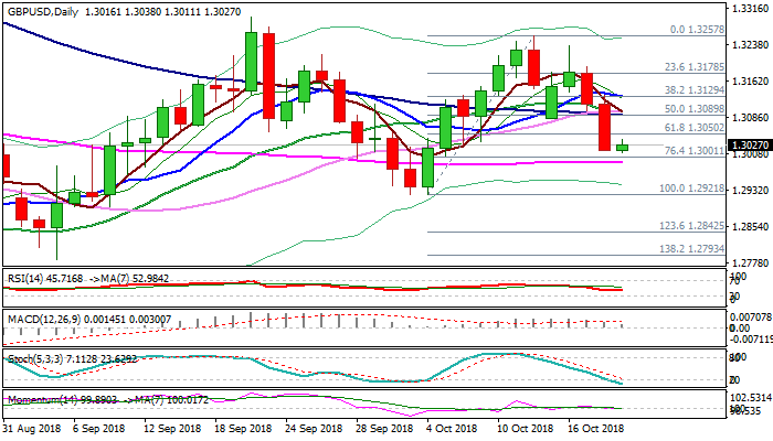 Bears are taking a breather ahead of strong support zone between 1.3012 and 1.2990 (daily cloud top / Fibo 76.4% of 1.2921/1.3257 / 55SMA), before continuing lower.