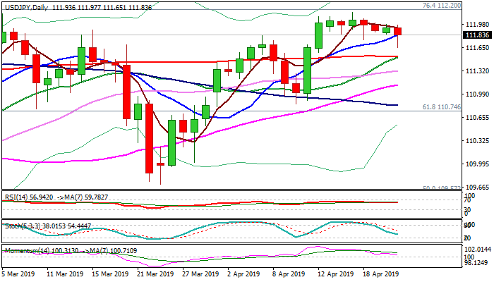 The pair recovered quickly from overnight’s drop to 111.65 and holding within tight range between 10SMA (111.83) and psychological 112 barrier in European trading on Tuesday.