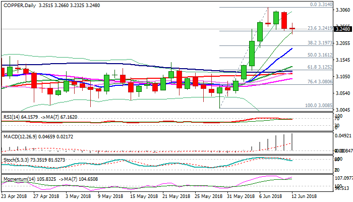 Corrective pullback faces strong supports at $3.1973 (Fibo 38.2% of $3.0085/$3.3140 rally); 3.1935 (former high of 19 Apr) and $3.1904 (rising 10SMA) which are expected to contain correction and keep larger bulls intact for final push towards key barrier at $3.3200 (28 Dec peak).