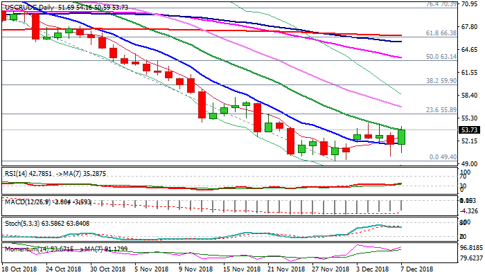 Fresh rally returned above broken 200WMA ($52.31), cracked falling 20SMA ($53.67) and pressures recovery highs at $54.54, posted earlier this week, with sustained break higher to open way towards falling 30SMA ($56.80) and signal base at $50 zone.
