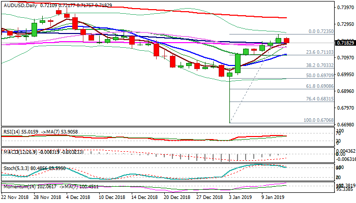 Deeper pullback could extend towards pivotal supports at 0.7118/10 zone (10/20SMA’s which formed bull-cross / Fibo 23.6% of 0.6706/0.7235).