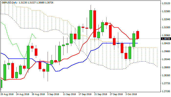Daily Tenkan-sen offers immediate support at 1.3069, followed by Kijun-sen at 1.3041, which should ideally contain dips and keep pivotal support at 1.3012 (daily cloud top) intact.