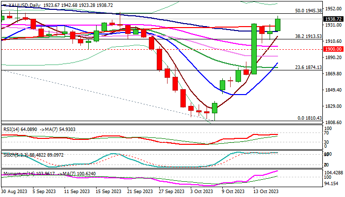 Daily close above broken 200DMA ($1929) is seen as minimum requirement to keep bulls intact for attack at pivotal $1945/52 zone (50% of $2080/$1810 / Sep 1 spike high), break of which to unmask next targets at $1977 / 87 (Fibo 61.8% / July 20 top).