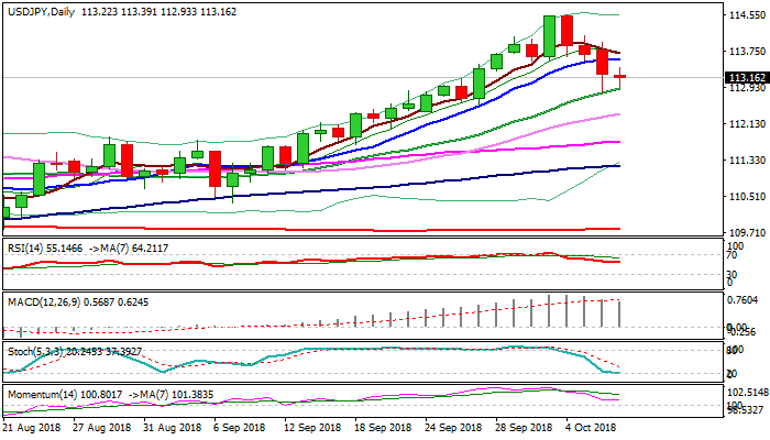 However, no significant upside action could be expected as momentum on daily chart is weak and while 10SMA (113.57) caps, with sideways mode expected while the price holds between pivots at 112.91 (20SMA) and 113.57 (10SMA).
