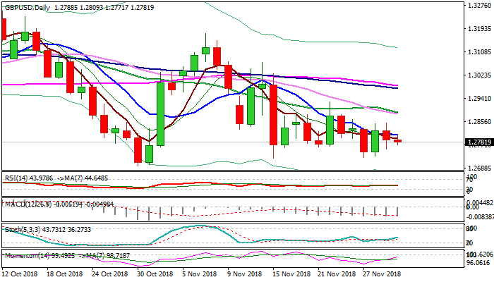 Initial bullish signal could be expected on sustained break above 10SMA (1.2807) which would open 1.2850 (tops of Thu/Wed) but stronger bullish signal could be expected on firm break above range top at 1.2927.