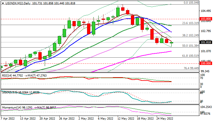 The dollar index dipped to new one-month low in early Friday, with fresh weakness signaling continuation of the downtrend from 105.04 peak (20-year high, posted on May 13), after bears were paused for consolidation in past three days.