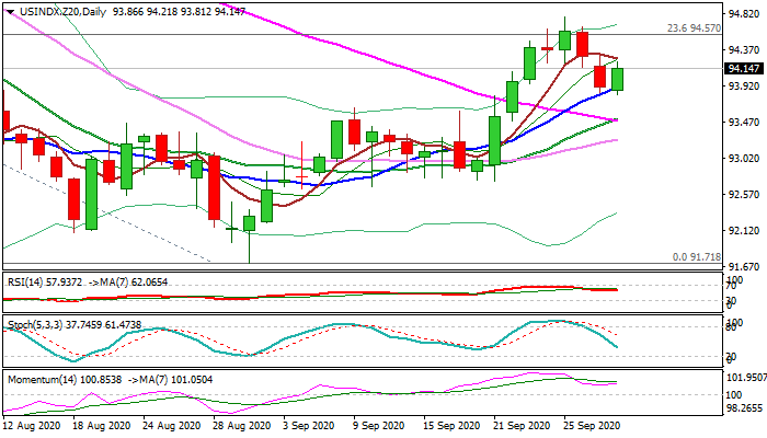 Bulls need repeated close above 10DMA (93.91) to confirm positive stance with close above 94.18, to signal further recovery and expose last week’s recovery high (94.78) and daily cloud top (94.93).