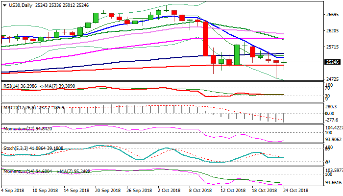 The Dow price spiked to new 3 ½ month low at 24751 on Tuesday, but bears showed strong downside rejection, as subsequent bounce returned and closed above 200SMA (25142), which keeps the downside protected for two weeks.