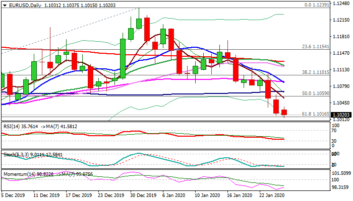 Fresh bears face headwinds at key Fibo support at 1.1016 (61.8% of 1.0878/1.1239) and hold here for now.
