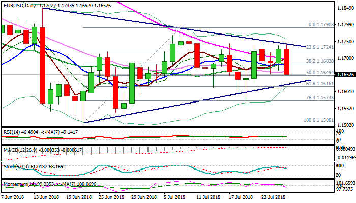 Fresh weakness returned below daily cloud and is on track for strong bearish close today, which could generate bearish signal and risk attack at triangle support line (1.1620).