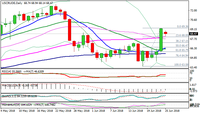 Eventual break above $69.33/43 pivots, as well as psychological $70 barrier, would generate strong bullish signal for extension of recovery from $63.58 (18 June low).