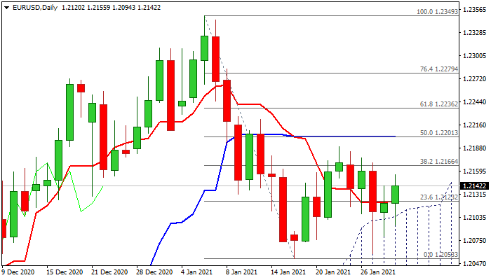 Bulls probe eye pivotal barriers at 1.2166/70 (Fibo 38.2% of 1.2349/1.2043 pullback / 20DMA) with firm break here to generate initial reversal signal, which would look for confirmation on lift above 1.2189 (22 Jan lower top).