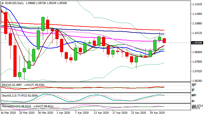 Bearish signals are generating on daily chart on false penetration into daily cloud, unsuccessful probe above important barriers at 1.0986/1.1001 (Fibo 61.8% of 1.1147/1.0727 / 100DMA) that formed bull-trap, rising negative momentum and stochastic reversing from overbought territory.