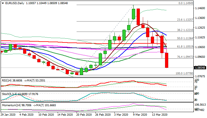 Fresh weakness probes again through Fibo support at 1.0863 (76.4% of 2017/2018 1.0340/1.2555 ascend) which was cracked last week.