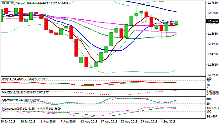 Conflicting daily indicators (momentum is weakening while slow stochastic continues to trend higher and MA’s are turning to bullish configuration) lack clearer direction signal.