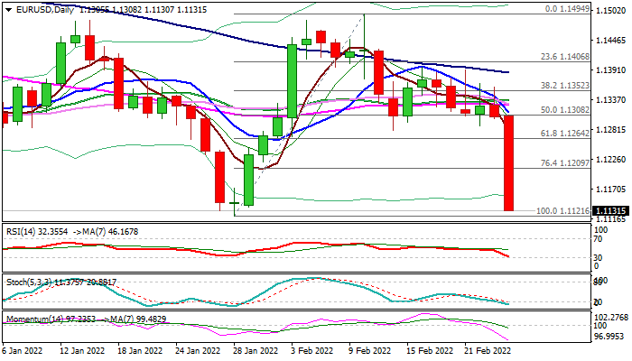 Bears eye next targets at 1.1040/1.1000 (Fibo 76.4% of 1.0635/1.2349 / psychological) violation of which would risk fresh bearish acceleration and open way towards 1.0635 (2020 low).