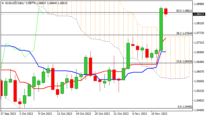 Bulls are taking a breather and positioning for fresh push higher, with broken 200DMA (1.0802) to ideally contain dips and offer better buying opportunities for extension towards targets at 1.0959/1.1000 (Fibo 61.8% / psychological).