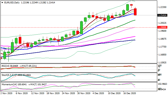 Steep fall of 14-d momentum fuels fresh bears for extension towards pivotal supports at 1.2086/58 (rising 20DMA / Dec 9 higher low) break of which would generate initial reversal signal and open way for deeper correction of 1.1602/1.2272 rally, with next key points at 1.2016/00 (Fibo 38.2% / psychological) expected to come in focus.