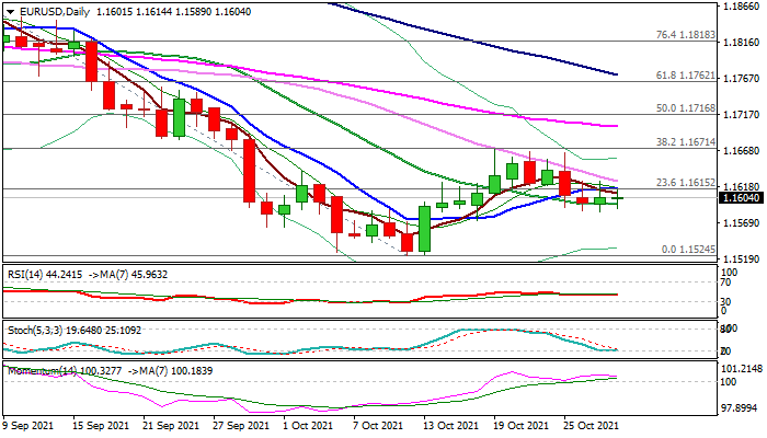 Conversely, lift above converging daily Tenkan-sen / Kijun-sen (1.1620/37) would ease downside pressure, but sustained break of 1.1671 Fibo barrier would signal continuation of recovery from 1.1524 (Oct 12 low).