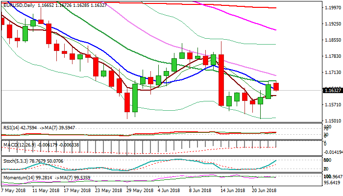 Two-day recovery off last week’s low at 1.1508 failed to break 20SMA (1.1674) on Friday and early Monday’s action remains capped here.
