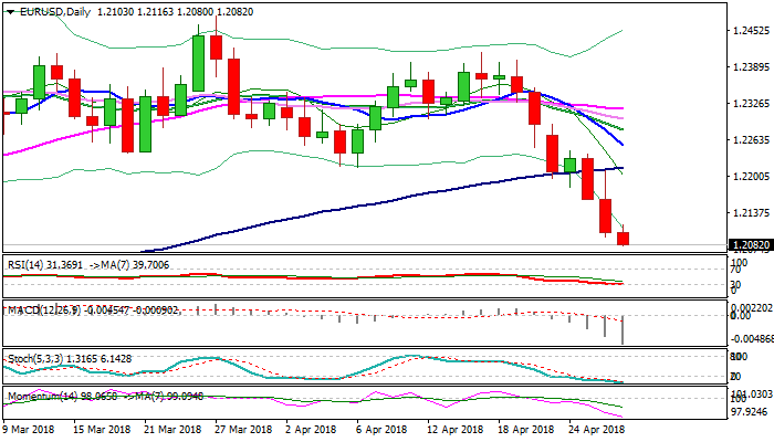 Fresh weakness eyes immediate support at 1.2054 (Fibo 50% of 1.1553/1.2555 rally / weekly Kijun-sen) which marks more significant psychological 1.20 support, reinforced by 200SMA.