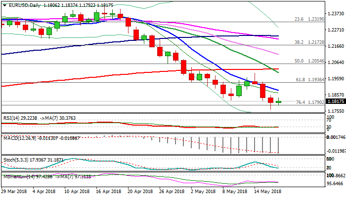 Negative outlook is supported by dollar’s rally, driven by higher US yields and political uncertainty in Italy and would remain intact while the pair holds below Wednesday’s high at 1.1853 (also Fibo 38.2% of 1.1996/1.1763 downleg).