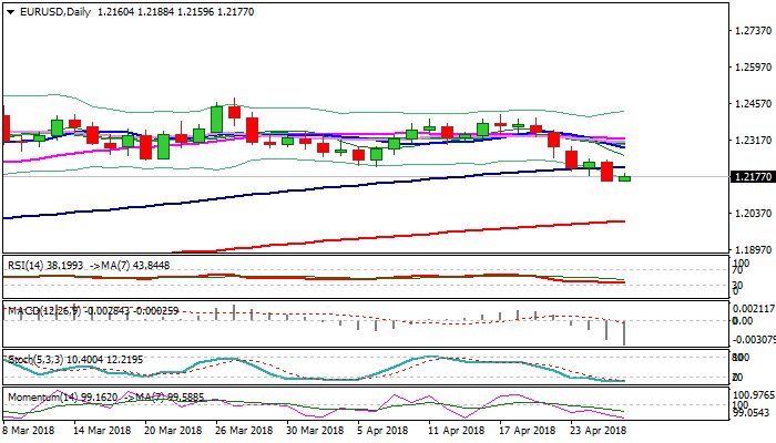 Positive scenario requires firm break above 100SMA (1.2213) and penetration of narrowing daily cloud (cloud base lies at 1.2239) to generate bullish signal and open way for stronger retracement of 1.2413/1.2159 fall.