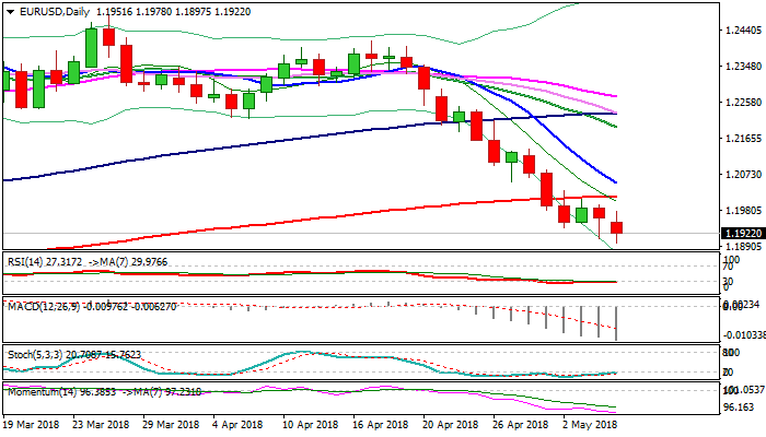 The pair maintains firm bearish tone which strengthened further after narrow consolidation in past couple of sessions kept key barrier provided by 200SMA (1.2016) intact.