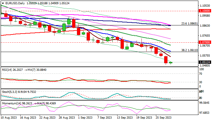 Overall technical picture on daily chart is firmly bearish and points to further losses, as fundamentals are also negative, with strong dollar on Fed’s higher for longer rate prospect, weighing on a single currency.