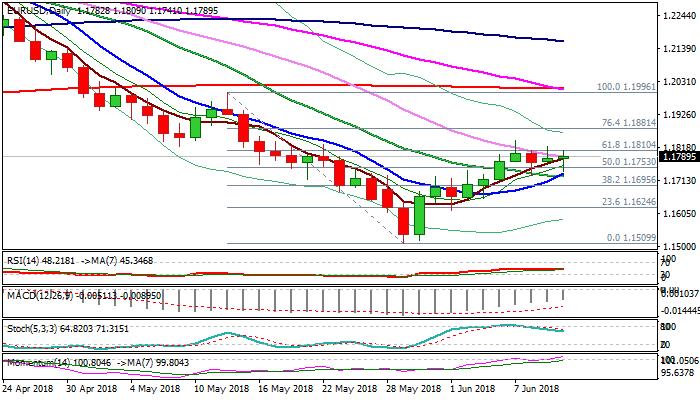 Bullish setup of daily techs and strengthening momentum are supportive factors for further advance, but the sentiment was soured by downbeat German ZEW (Jun -16.1 vs -14.6 f/c and -8.2 in May) and French non-farm payrolls data.