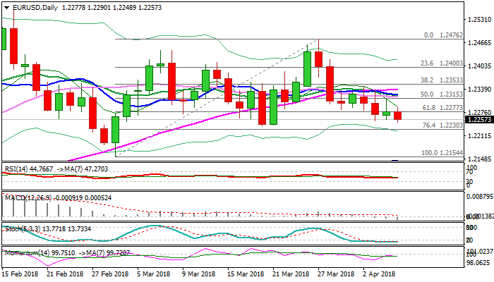 Near-term bears eye targets at 1.2240/30 (20/21 Mar higher base / Fibo 76.4%), to open way towards key supports at 1.2154/45 (01 Mar trough / daily cloud base, reinforced by rising 100SMA).