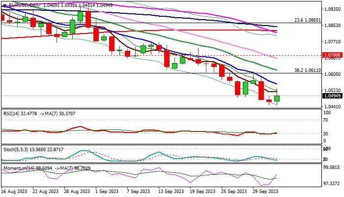 Fresh recovery see break above falling 10DMA (1.0554) as a minimum requirement to generate firmer bullish signal, which will look for confirmation on extension and close above 1.0611/26 pivots (broken Fibo 38.2% of 0.9535/1.1275 / falling 20DMA) to open way for stronger recovery.