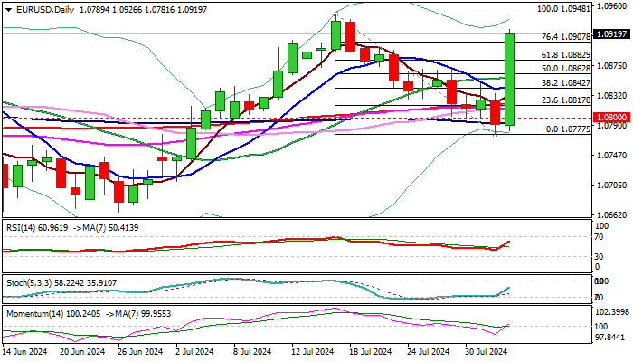 However, strong rally is likely to result in profit-taking which may stall advance under 1.0948 target and keep fresh bulls on hold for consolidation.