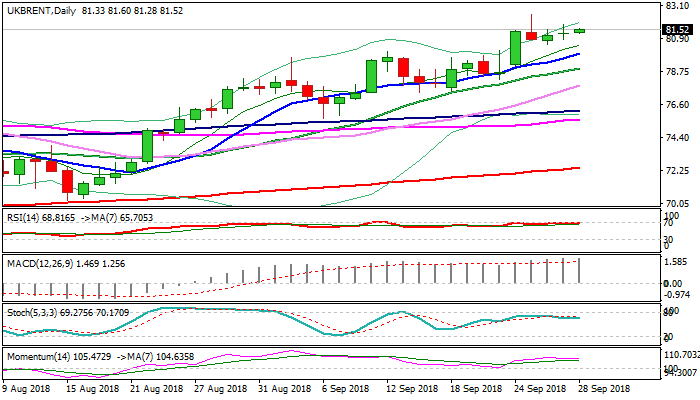 Brent oil edged higher in early Friday’s trading, signaling that corrective pullback from new four-year high at $82.53, which found footstep at $80.51, might be over.