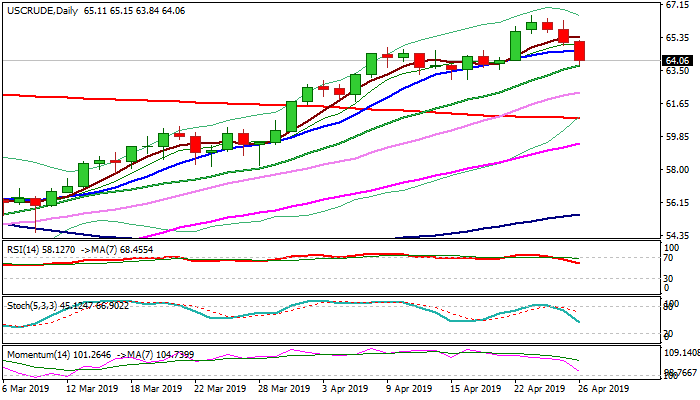 WTI oil price holds in red for the third straight day and extends pullback from new 2019 high into third straight day.