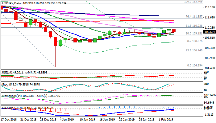 The pair eases on Wednesday after the third straight failure at 110 zone, as traders took some profits on fears that bulls may stall her again.