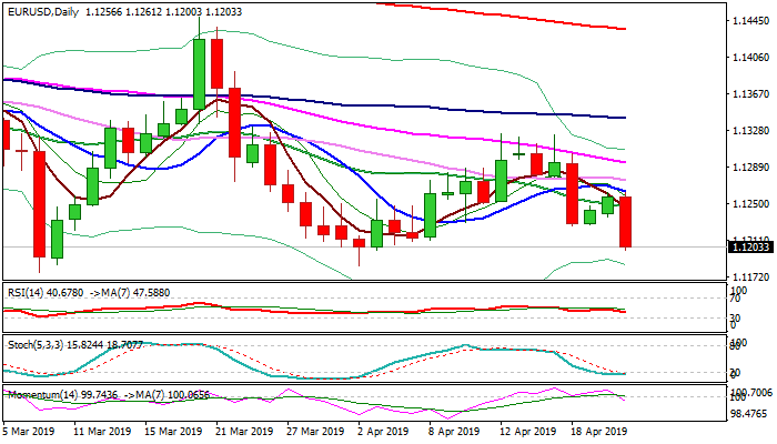 Fresh weakness broke below pivotal support at 1.1226 (18 Apr higher low) and pressures important short-term support levels at 1.1186 (Fibo 61.8% of 1.0340/1.2555) and 1.1183/76 (2 Apr low / 7 Mar low, the lowest since mid-June 2017).