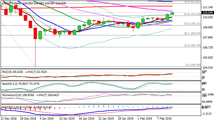 Bulls were additionally supported by weaker than expected Japanese data, released overnight) and pressure barriers at 110.71/78 (55DMA / 100WMA) break of which would generate fresh bullish signal and may trigger extension towards 111.26 (200SMA).
